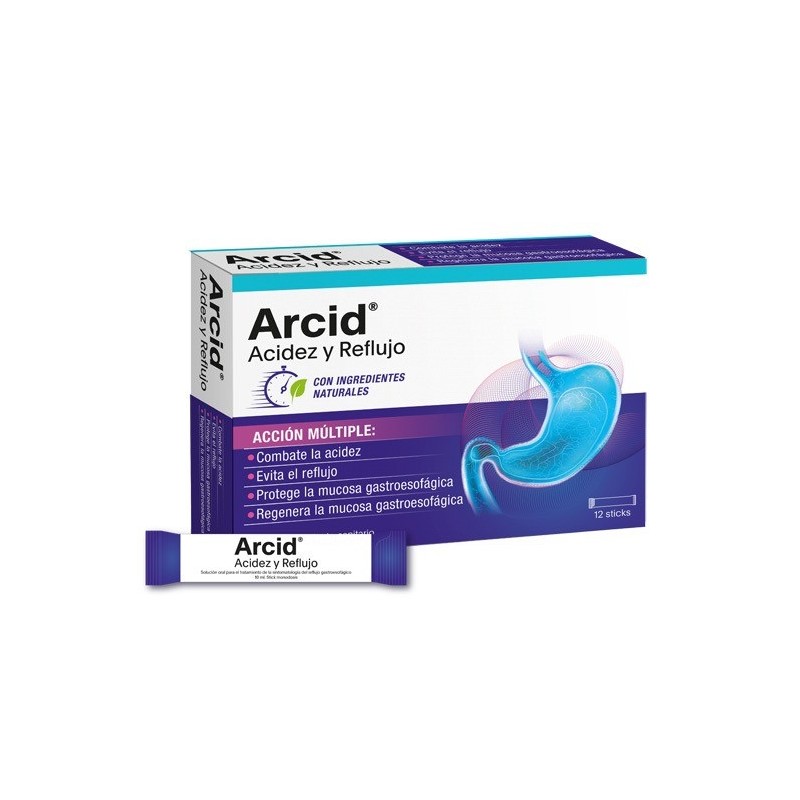 ARCID es un producto sanitario indicado para el tratamiento de todos los síntomas asociados al reflujo gastroesofágico tales como acidez, ardor, esofagitis, regurgitación ácida, dolor estomacal, dolor en el pecho y tos seca.