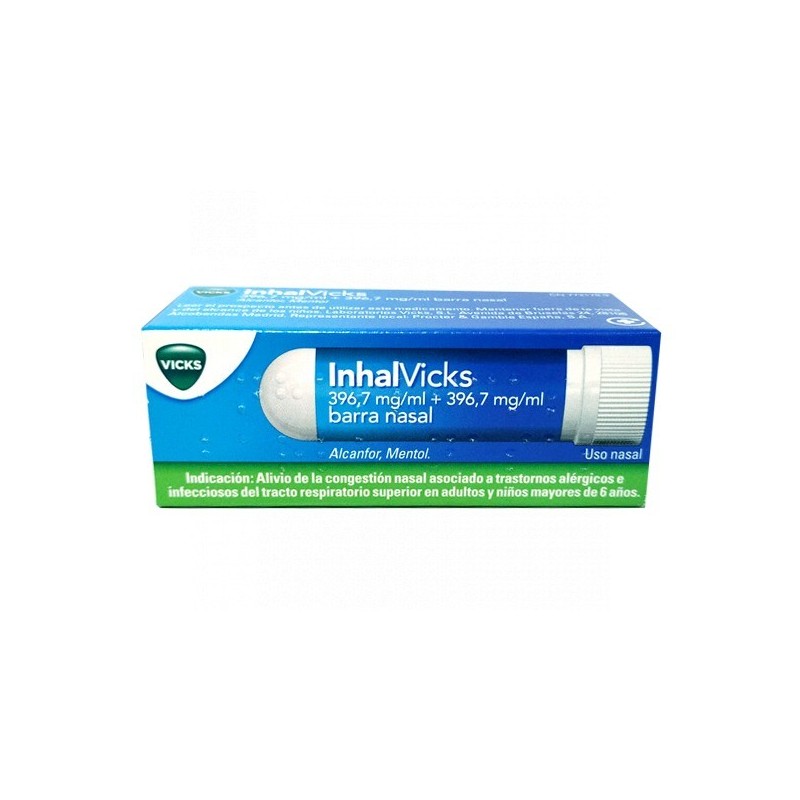 InhalVicks es un descongestionante nasal. Indicado en adultos y niños mayores de 6 años para el alivio de la congestión nasal asociado a trastornos alérgicos e infecciosos del tracto respiratorio superior.